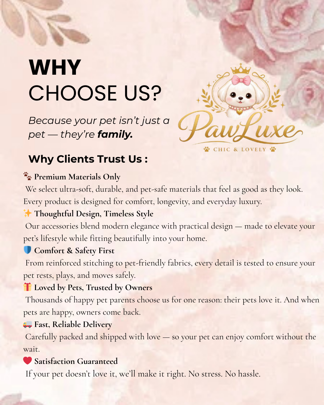 Inspired by the unbreakable bond between a dog and its owner, this collar was created to symbolize pure love and loyalty, represents a promise — to protect, to cherish, and to stand by your dog through every moment of life. Each time it catches the light, it quietly reminds your pup that they are deeply loved.